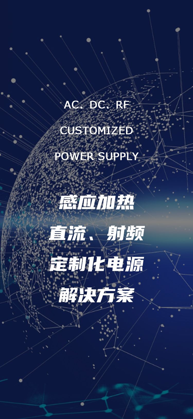 主要產(chǎn)品有全自動(dòng)智能化低頻/中頻/超音頻/高頻/超高頻感應(yīng)加熱電源、并聯(lián)斬波電源、空冷電源、直流電源、射頻電源、定制化電源等。